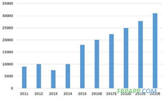 2015年年底,全球風電裝機容量達到432.42GW,累計年增長率為17%。2015年碳纖維在風能上的應用為17000噸,預計2020年達到30000,年均復合增長率為8.1%。中國累計裝機容